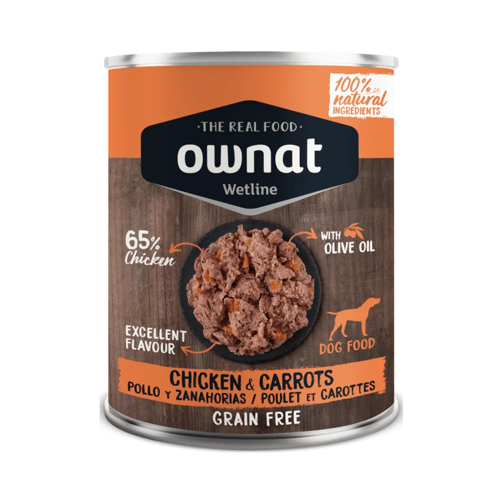 Este alimento húmedo natural de pollo y zanahoria está elaborado con ingredientes frescos y de verdad, sin carnes reconstituidas, sin harinas y sin huesos.